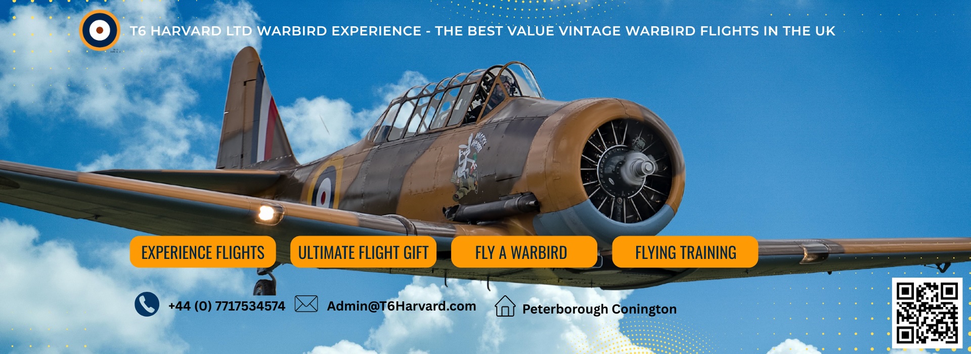 WWII T-6 Harvard warbird flight experience with the Wacky Wabbit, operated by T6 Harvard Ltd in the UK